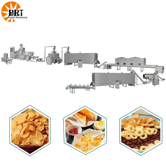 L'impianto di produzione di cereali per la colazione è una linea di lavorazione cmplete che ha così tante macchine diverse, utilizza le materie prime come farina di riso, farina di mais e così via per produrre tutti i tipi di prodotti finali in diverse forme!