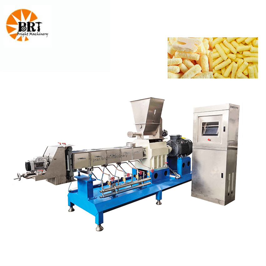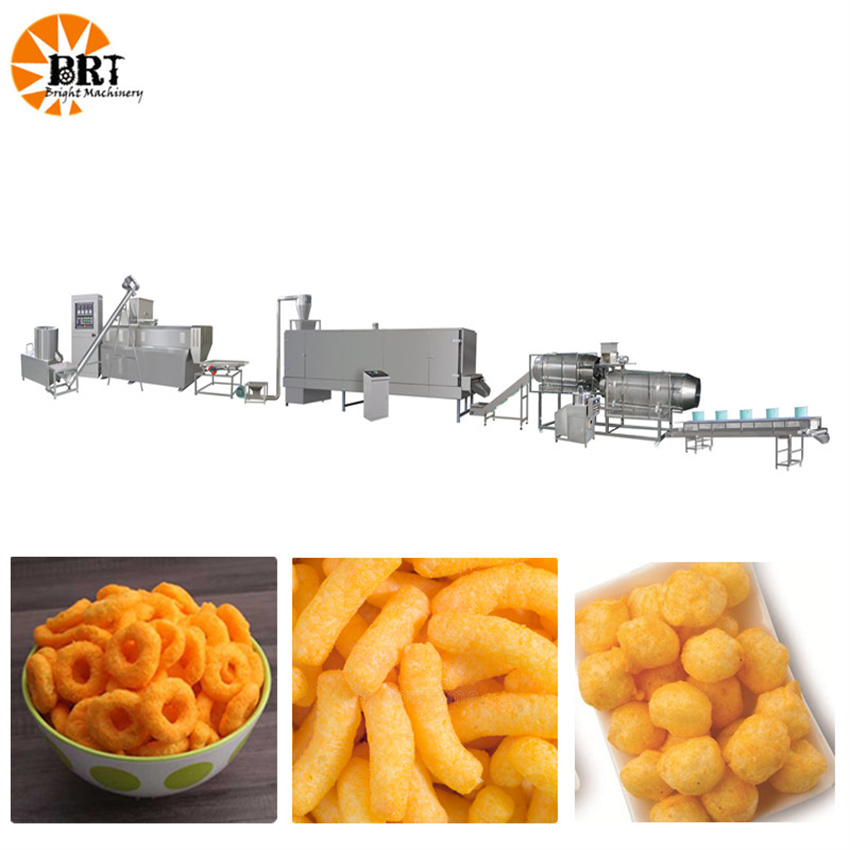 La linea di produzione automatica di snack a sbuffo trasforma le materie prime in polvere, come la farina di mais, in snack per bignè utilizzando una macchina che mescola, soffia, asciuga, aromatizza e raffredda. Snack puff di varie forme e dimensioni possono essere prodotti sulla stessa linea di produzione. Allo stesso modo, lo stesso snack a sbuffo può essere collegato con tracce di produzione di sistemi di prim'ordine in base a capacità specifiche.