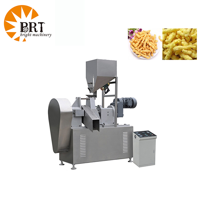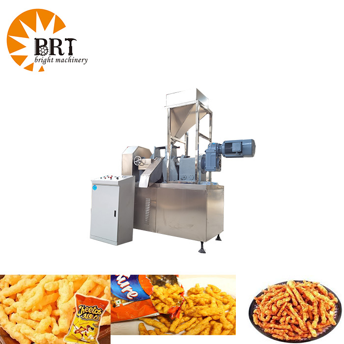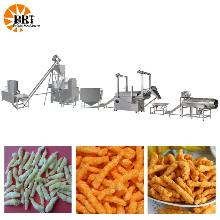 Cheetos realizzati da kurkure macchine della linea di produzione sono un tipo speciale di cibo estruso che risulta croccante in bocca. Le griglie di mais rimosse dal germe vengono miscelate con una certa proporzione di acqua e quindi immesse nelle macchine della linea di produzione kurkure dell'estrusore a testa rotante. Sotto l'azione di estrusione e impastatura delle due piattaforme girevoli dell'estrusore, i chicchi di mais formano forme attorcigliate irregolari, che vengono poi tagliate alla lunghezza desiderata dalla taglierina. I cheetos possono essere conditi dopo la frittura o la cottura nelle macchine della linea di produzione kurkure . È popolare tra i consumatori per il suo gusto delizioso.